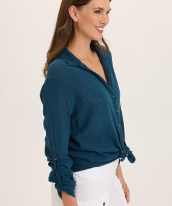 XCVI Women’s Shop Ralston Indigo Twill Lightweight Pleated Wide Leg Pant | Sluice Wash