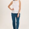 In soft, smooth Peachskin Tencel, Daga offers a pull-on waist style with a slight flared cut. Contrasting twill tape adorns each hip pocket, making Daga as functional as she is versatile.