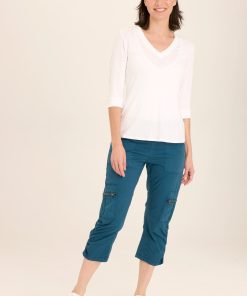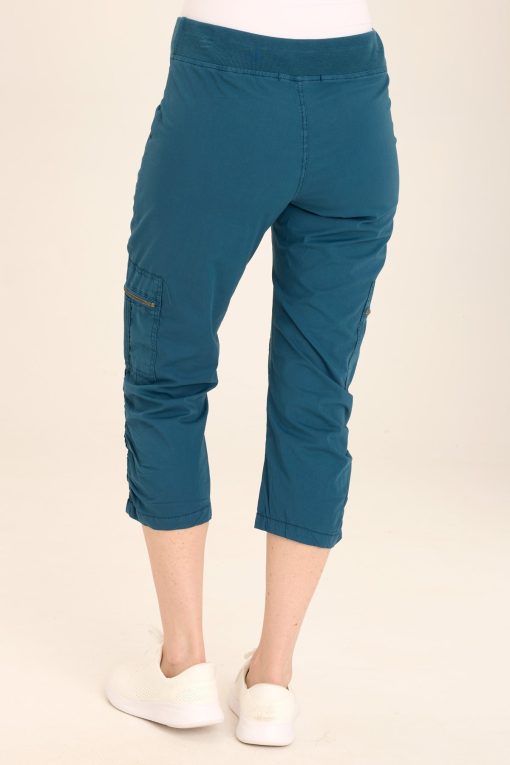 This iconic stretch poplin crop features a pull-on elastic waistband, two front pockets and two cargo zip pockets, clean back and style lines for added comfort.