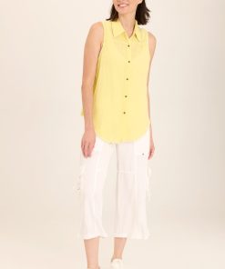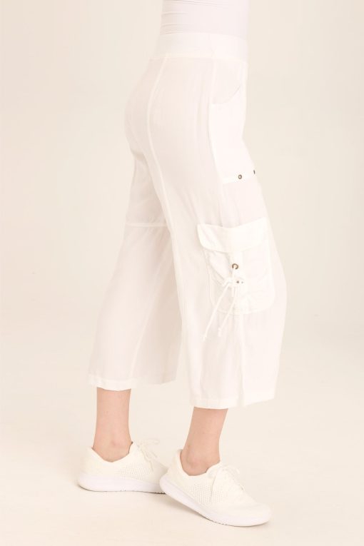 Contrasting trim along the pockets add dimension to YanaÕs wide-leg look, while pockets of every kind adorn this crop, complete with antique brass hardware for that perfect utility cargo look.