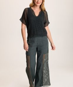 XCVI Women’s Centre Crochet Layered Top | Silken Pine Pigment