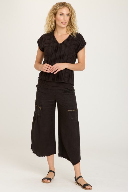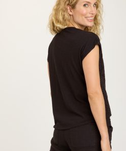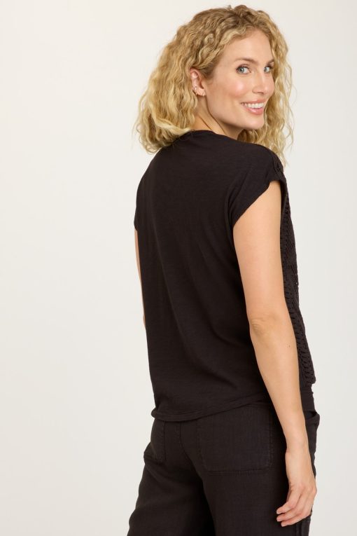 Floral-patterned crochet layers over a jersey lining in this v-neck, cap sleeve elevated tee. A slightly cropped front and boxy fit lends a casual feel to the delicate, artful Cotton Crochet.