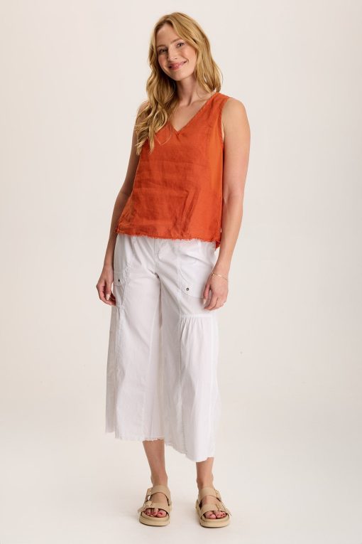Classic as can be, Estine features a roomy silhouette with a raw-edge hem, bra-concealing straps, and v-neck cut in Lavish Linen.