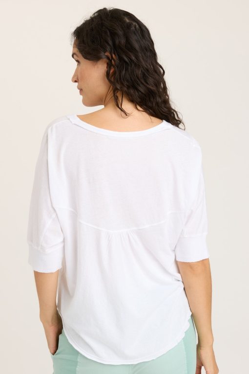 Contrast banded sleeve with a high-low hem, Gardiner Top is a slightly oversized, anything but basic, tee.