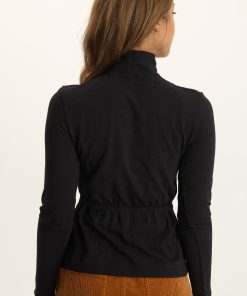 XCVI Women’s Kari Jersey Mock-neck Peplum Top | Black