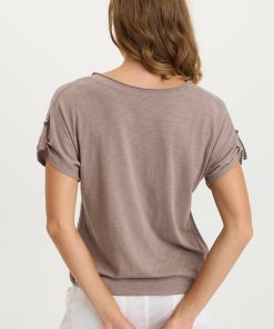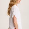 In a traditional XCVI silhouette, Bower V-Neck Tee has tabbed short sleeves, mesh trim inserts, a cinchable bubble hem and a contrasting slub jersey back panel.