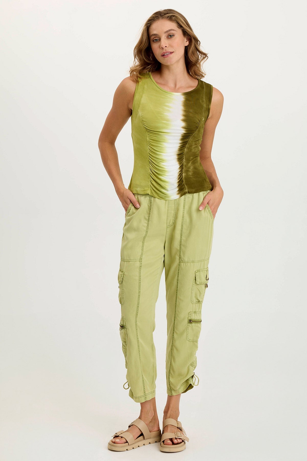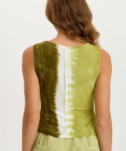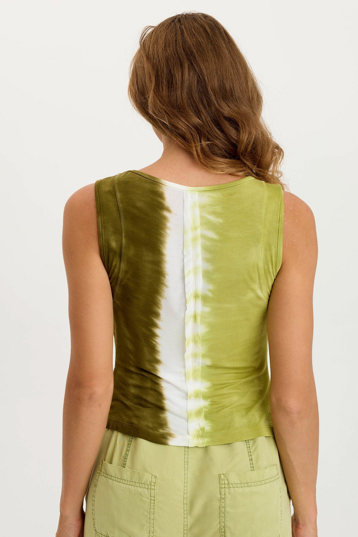 - Color Description: Mid-Tone Olive, Lime Green and White Vertical Sectional Tie-Dye