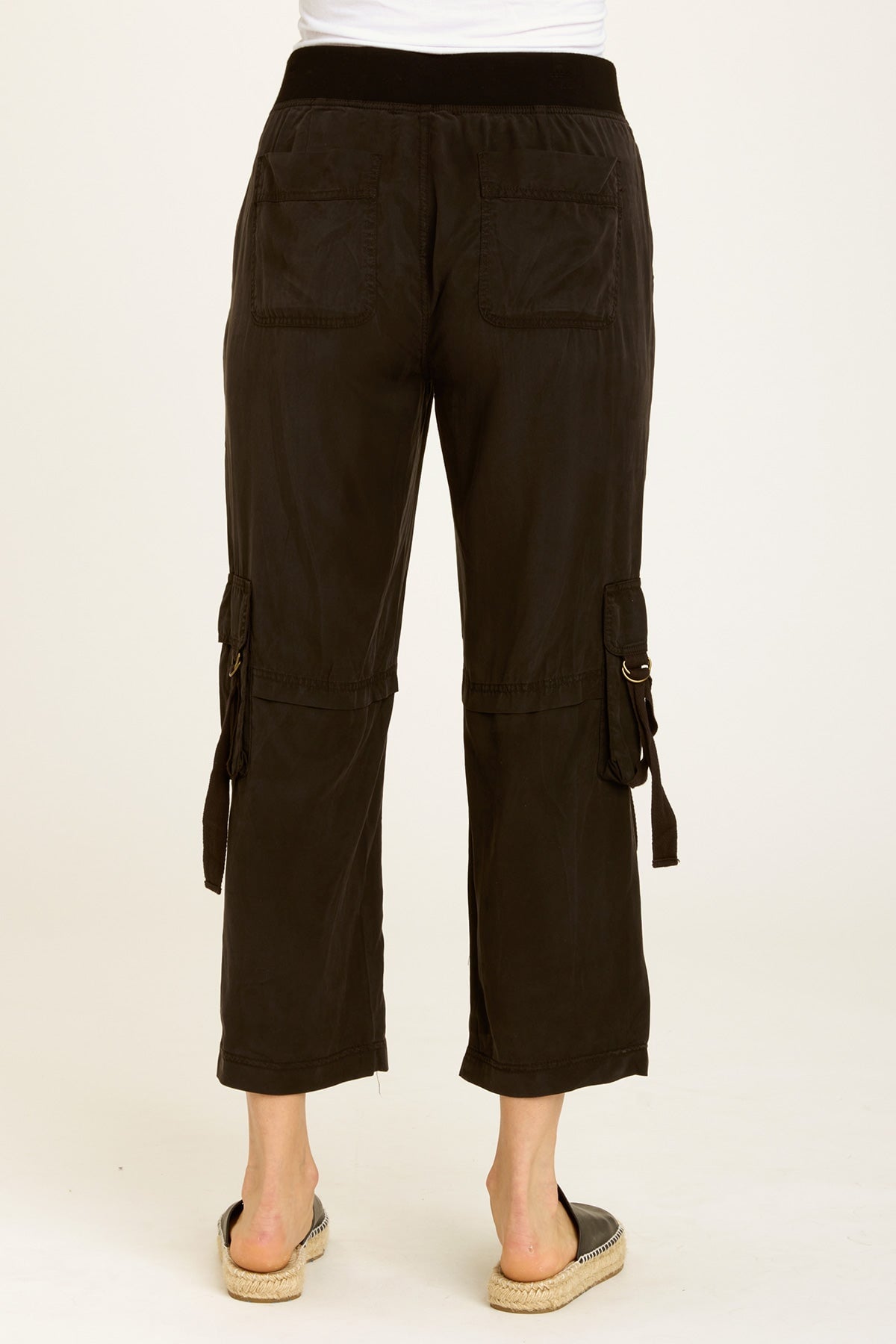 Pull-through d-ring cargo pockets and ring snap pockets grace this Soft Twill crop. A pull-on waistband and straight yet roomy silhouette top it all off.