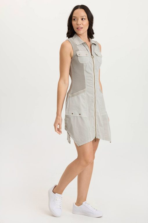 XCVI Women’s Shop Delmis Poplin/ribbed Sharkbite Zippered Collar Dress | Whitecap Pigment