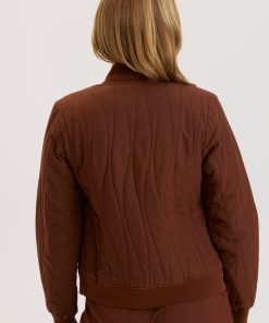 Another classic in a fun fabric! This clean bomber features a cotton quilted design and rib trims.