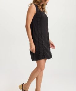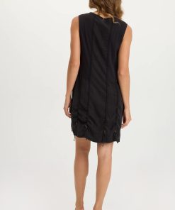 Corded drawstring cinches all around this tank dress. Karima has rib inserts and brass stoppers to help retain your customized cinching in this mini.