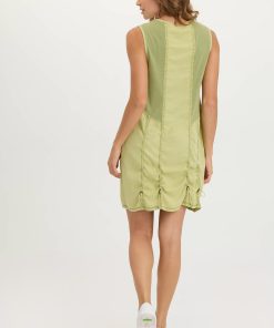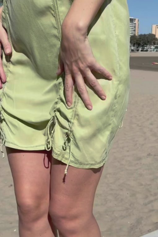 Corded drawstring cinches all around this tank dress. Karima has rib inserts and brass stoppers to help retain your customized cinching in this mini.