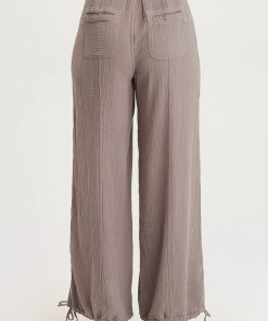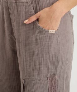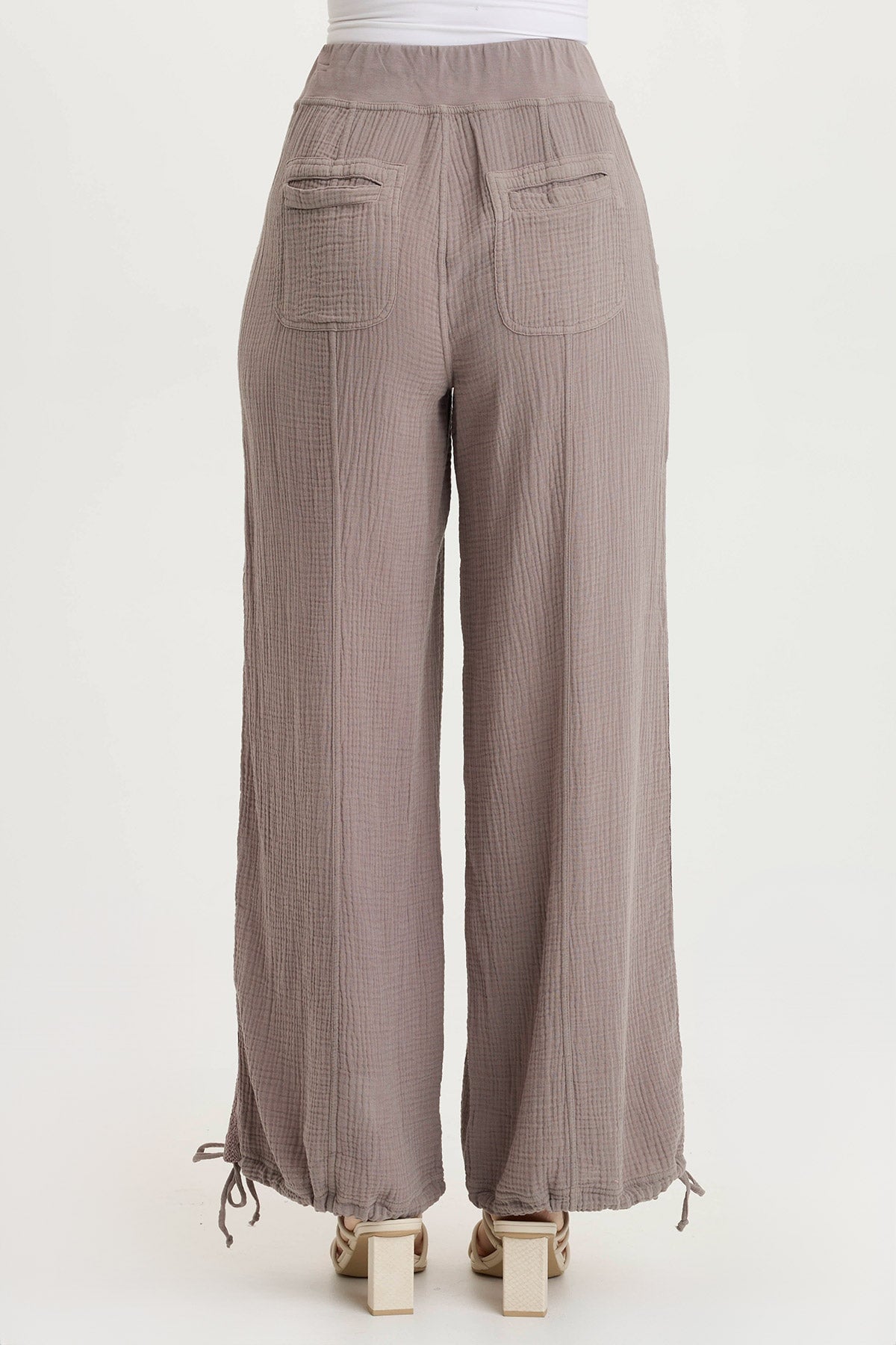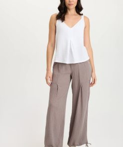 Two pleats adorn the front leg panels on this mesh trimmed, cinched leg opening pull-on pant. Lenka also has two front pockets and two back welt pockets.