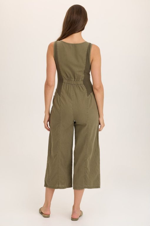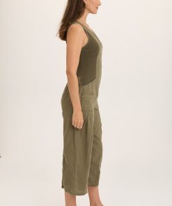This cotton linen head-turner features contrasting inserts at the bodice for a fit you can count on. Paired with layered pockets at the hips, small box pleats cascade and add soft volume to the leg. A v-neckline descends into an antique brass zipper that makes Macgowan easy to put on and take off.