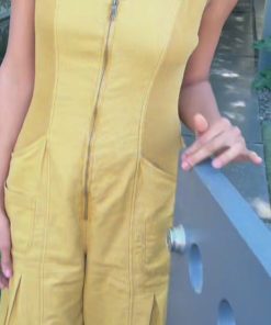 This cotton linen head-turner features contrasting inserts at the bodice for a fit you can count on. Paired with layered pockets at the hips, small box pleats cascade and add soft volume to the leg. A v-neckline descends into an antique brass zipper that makes Macgowan easy to put on and take off.