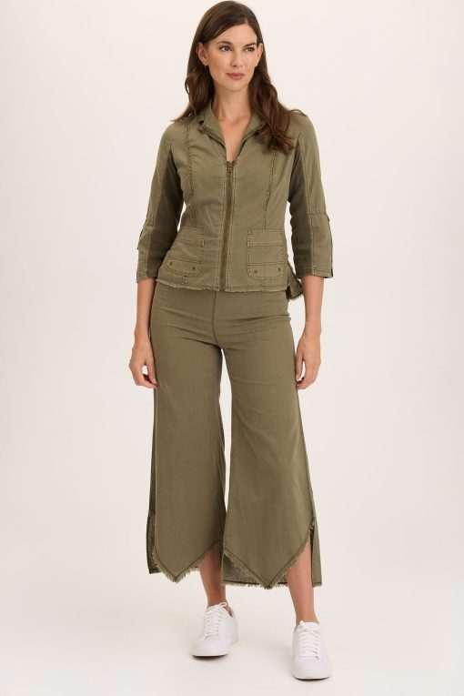 Your favorite, now in Cotton Linen! Hardware and raw edges are highlighted in our Raphael Blazer. Fabric-mixed contrasting panels, eyelets along the pocket edges, and brass ring snaps are just a few of the details throughout this interesting jacket.