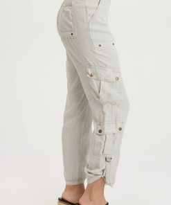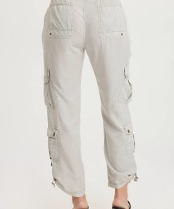 Lowe features a tabbed hem, multiple pleated cargo pockets, and traditional front and back pockets with an elastic pull-on waistband.