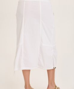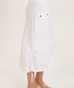 Fold over jersey waistband, cinchable bubble hem and contrasting panels are just a few of the best features of the Marconi Cargo Skirt. Chunky low pockets, a side pleat and brass hardware make this daring skirt one of a kind!