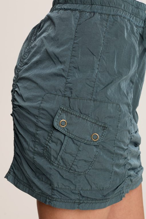 This nylon mini skirt features ruched paneling, a drawstring elastic pull-on waist, and cargo pockets for a cheeky athletic number that’s cute as can be!