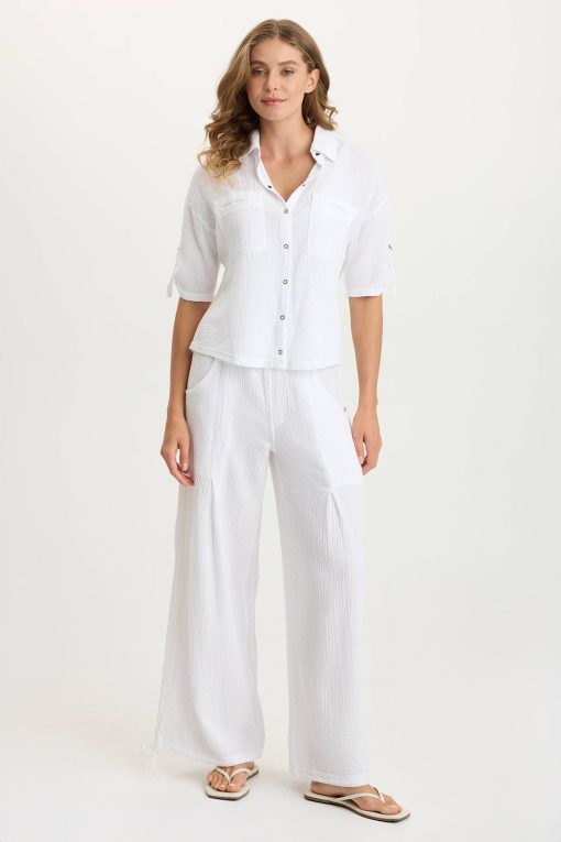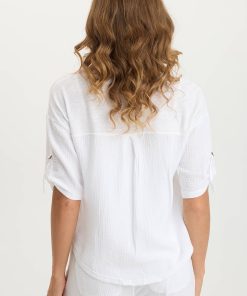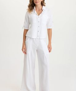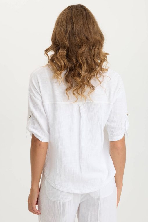 XCVI Women’s Shop Maurise Gauze/jersey Tabbed-sleeve Snap-up Top | White