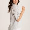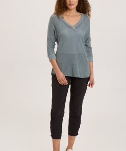 Lounge in style. Made in our favorite breatheable mesh, the Fira Pullover is a long sleeve V-neck piece for easy weekend wear. Features panels at hem with rib cuffs and neckline.