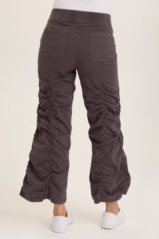 A pull-on stretch waistband and allover ruching adorn this flared split-hem gaucho style in lightweight Stretch Poplin.
