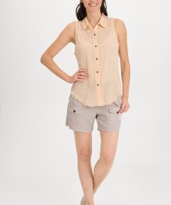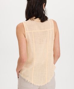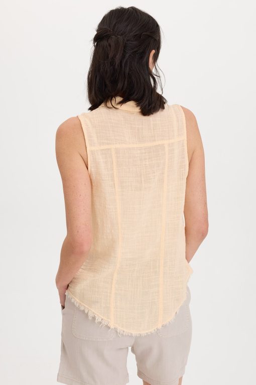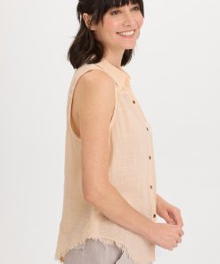 A traditional button-up style tank with a front and back yoke paired with raw edge details, made in our breezy cotton gauze.