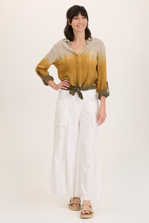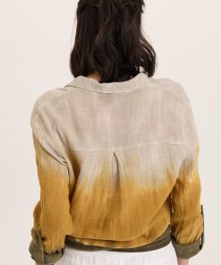 XCVI Women’s Shop Porter Gauze Curved Hem Button-up Top | Tricolor Ombre Voyage