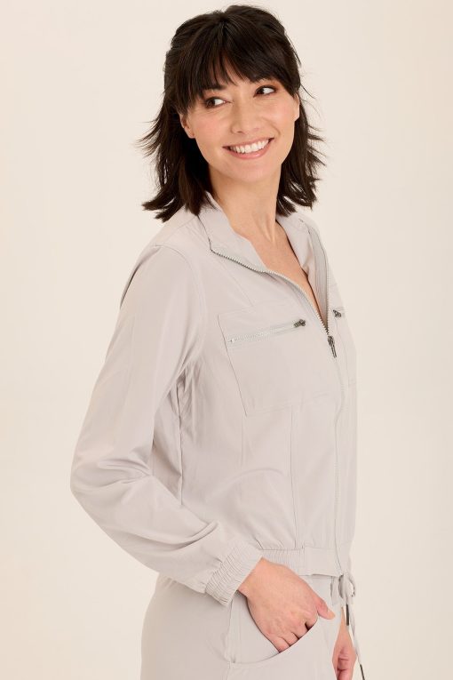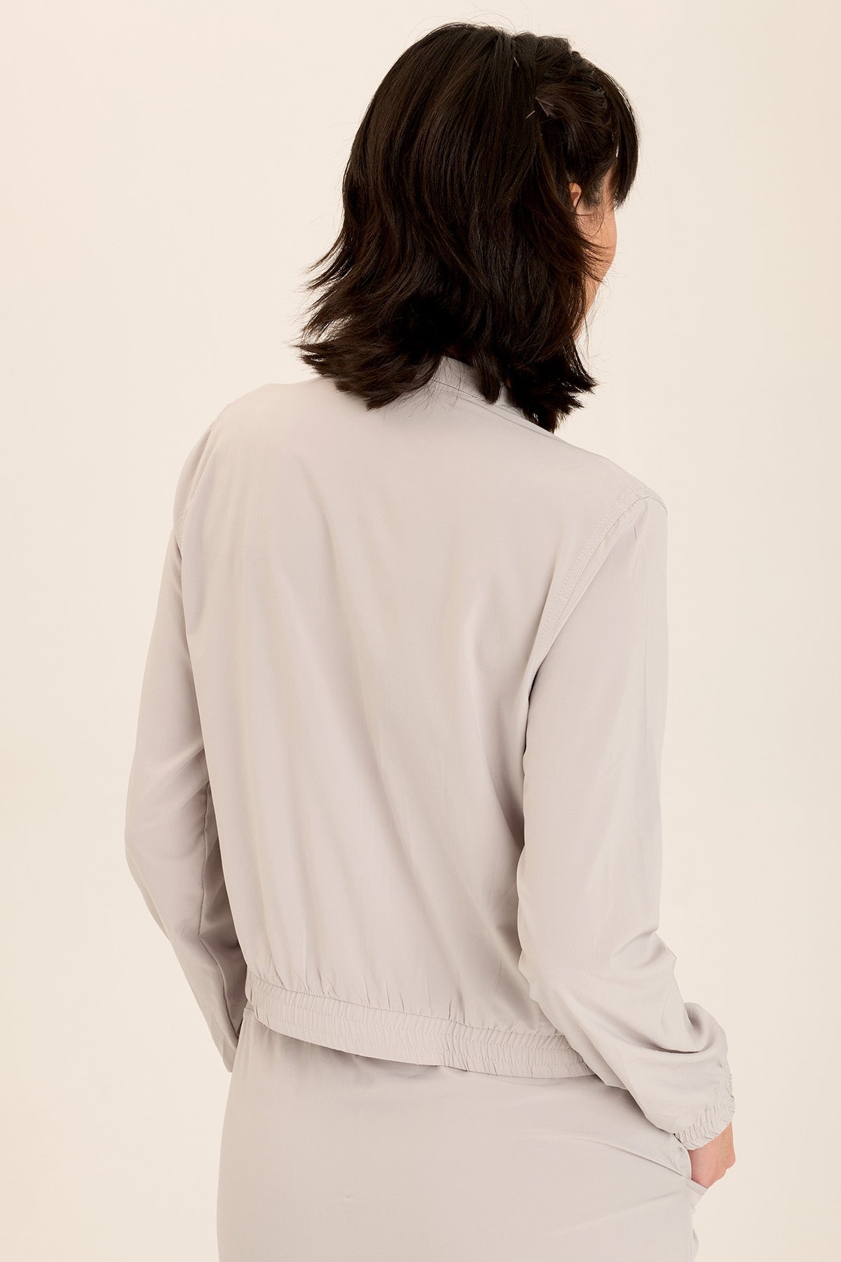 Ooooohhh! Look at this clean cut bomber. No extra fluff here, just easy and cool like a breeze through the trees. Quinn is the quintessential update to your bomber game! Ruched hem and cuffs, plus a smooth draped fabric equals putting one of these in your cart.