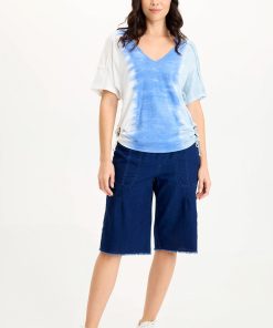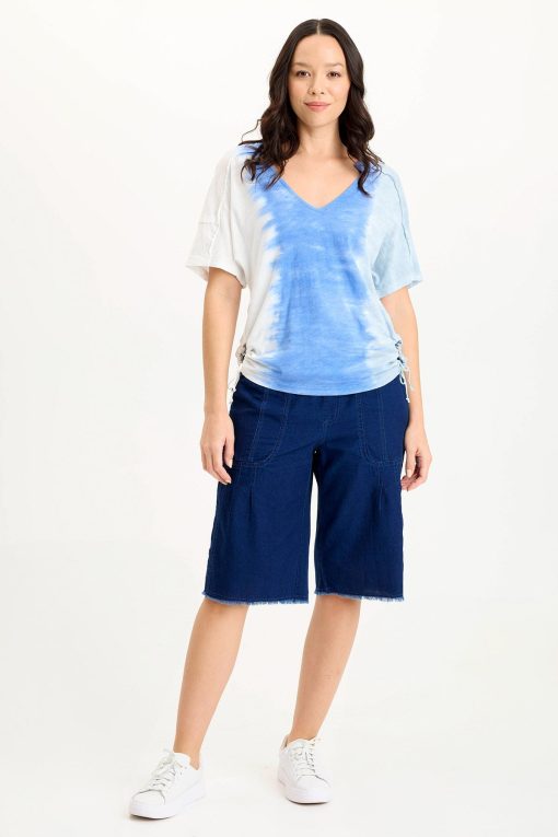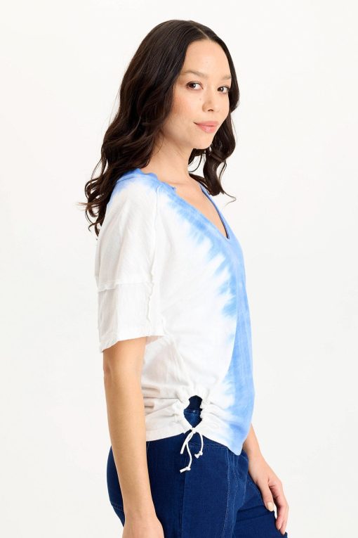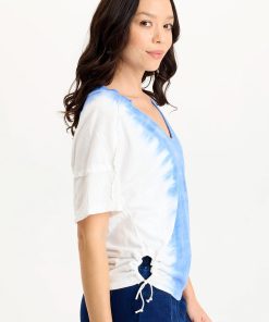 XCVI Women’s Shop Siwa Jersey Split-collar V-neck Tee | Aerial Wash Coastline