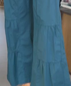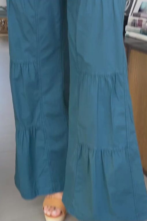 It’s back by popular demand: our signature terraced ruched wide leg pant, with a flat drawstring waist, back elastic, zip fly and side seam pockets.