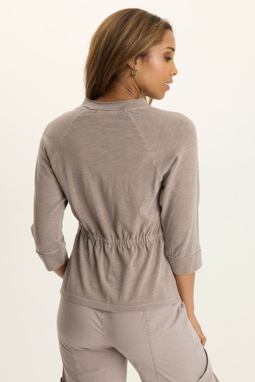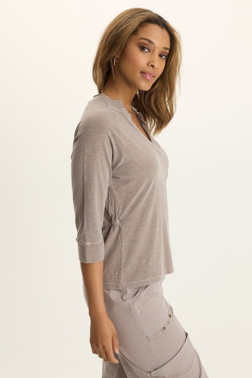 Soft slub jersey is once again a winner in this v-neck style featuring mid-length short sleeves. Flattering and functional, she’s a staple style waiting to happen!