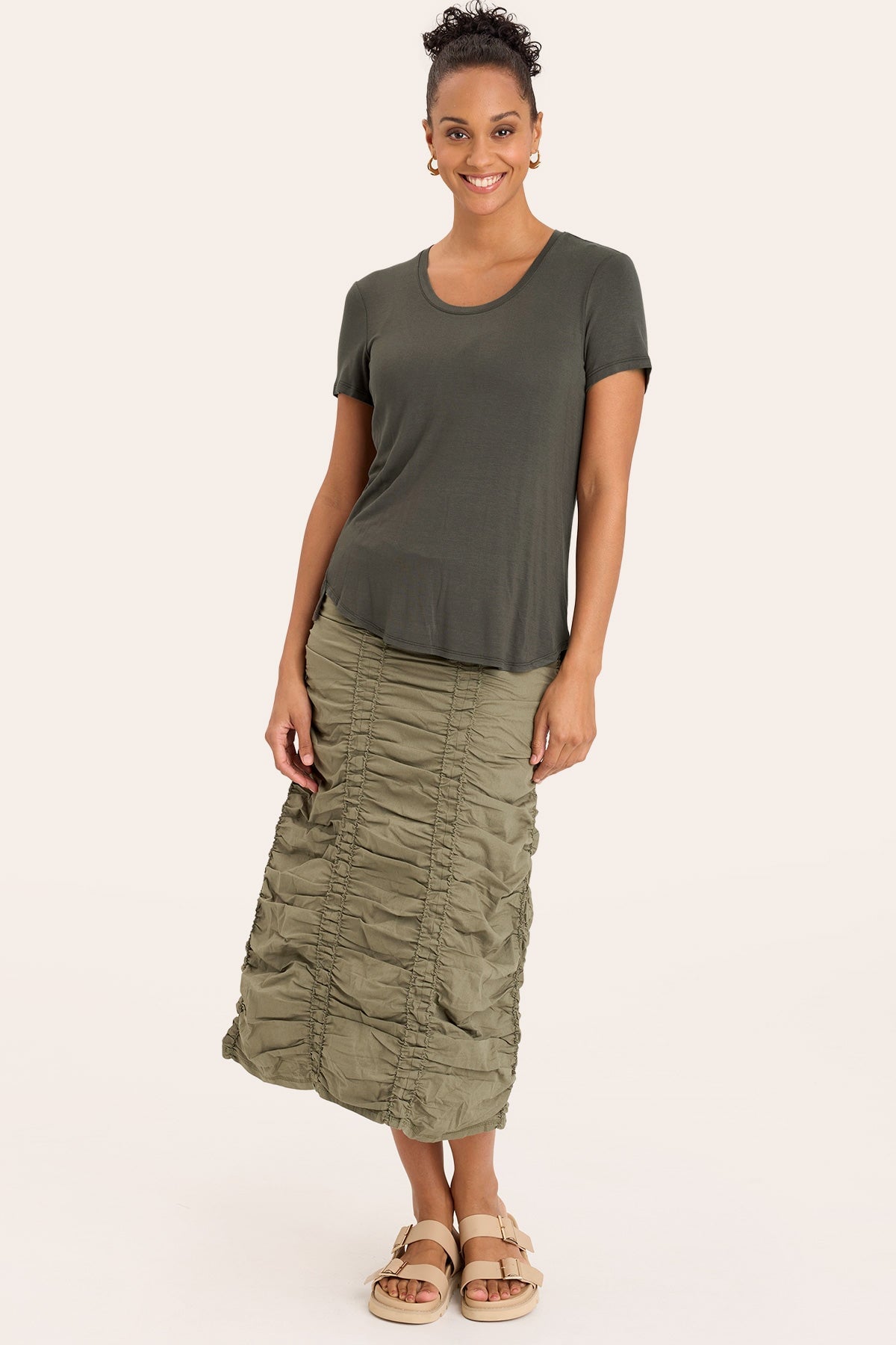 We took our best selling tee and made it in a deliciously soft jersey! With a clean look, the Authority Tee features a curved front hem into a straight back hem, with the traditional short sleeve and crew neck of a basic tee.
