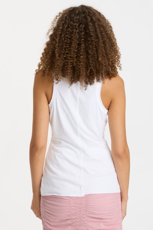 An athletic-inspired v-neck racer-back tank, Bash features raw-edge detailing on the neck, armhole, hem, and center back seams, all in plush Lucille Slub Jersey for plenty of stretch and movement-friendly comfort.