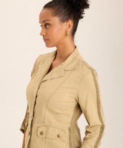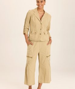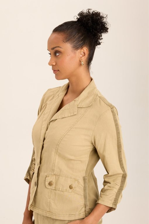 XCVI Women’s Tops Folksy Linen/stretch 4-pocket Shirred Blazer | Linwood Sands Pigment