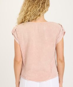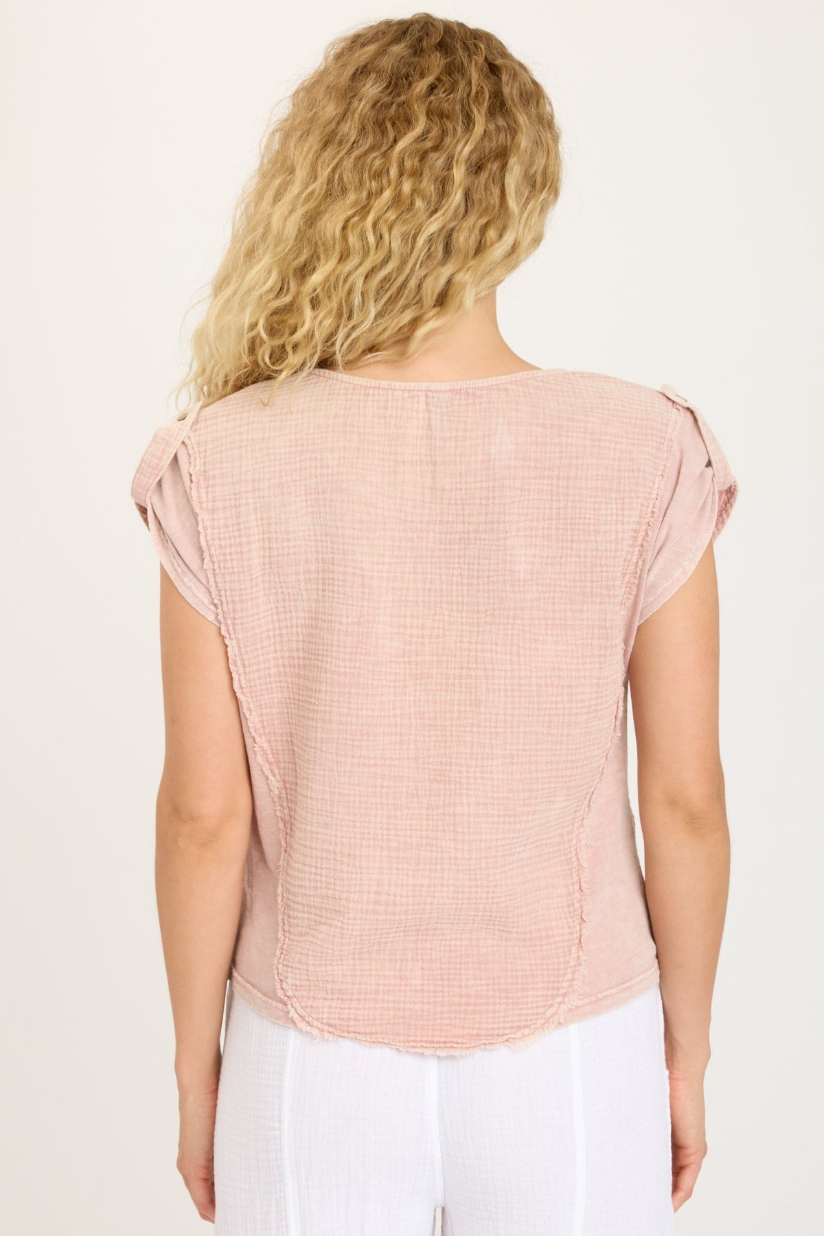 Tabbed short sleeves, a front breast pocket, a unique rounded raw edge hem, and slightly scooped neckline make up the Grigg Tee.