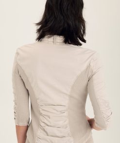 SheÕs back! A stylish, elevated, track jacket-inspired piece of lightweight outerwear, Janet is all for you! Featuring a stand collar with button details, rib inserts at the sides and at the 3/4 sleeves for an impeccable and comfortable fit, twill details at the zipper front, two front in-seam pockets, and ruching on the sleeves and back, Janet is as full of details as she is life!