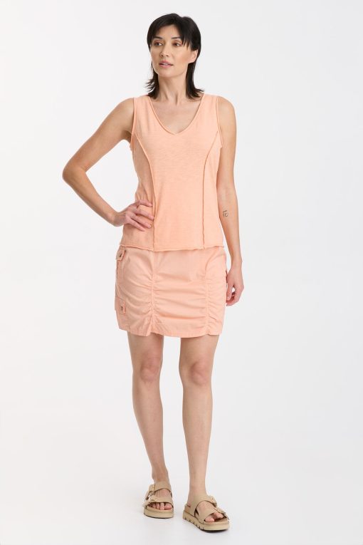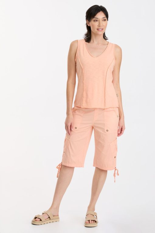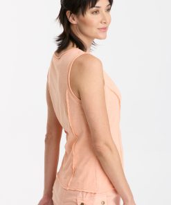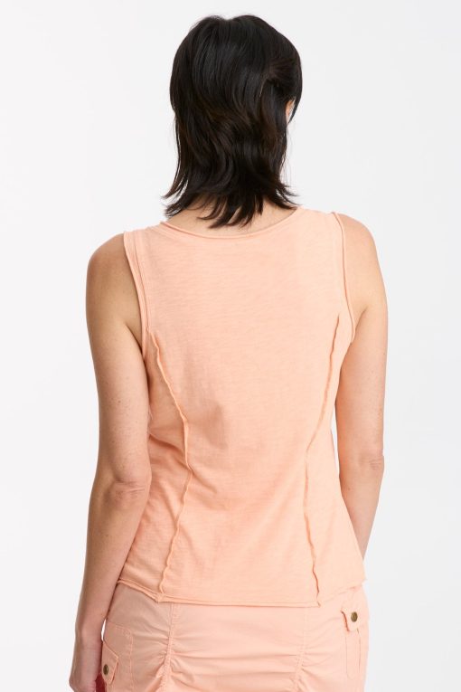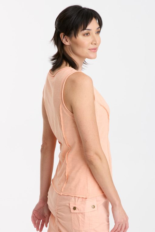 In slub jersey, the bra-friendly Laramie Tank features reversed stitched princess seams, a v-neck cut, and raw-edge details at the neck, hem, and armhole.