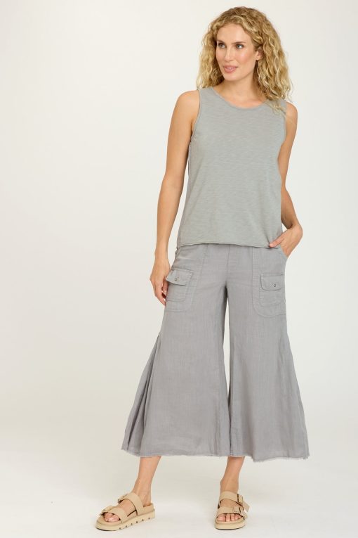 A go-to slightly scoop-neck tank in a duet of jersey and linen. Pairs with everything, ready to wear anywhere.