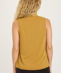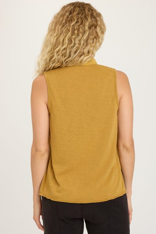 Small breast pockets, a stand collar, and raw-edge hemming bring subtle detail to the Mikkel Tank in our plush Soft Twill.