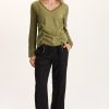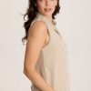 This gauze button-up blouse is great for layering. Features tabbed sleeve for easy rolling, curved hemline, and a box pleat on back.