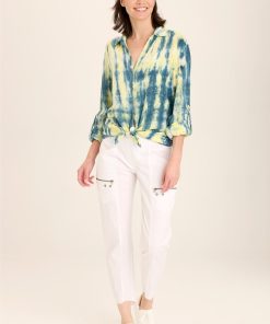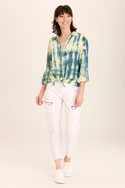 - Color Description: Splatter and Striped blue, yellow and white tie dye
