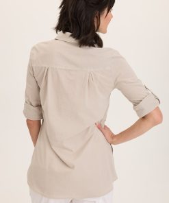 A classic XCVI body brought back to delight with a long tunic style silhouette and a snap-up front closure. Featuring rollable tabbed sleeves, two welt breast pockets and a yoked back pleated panel.