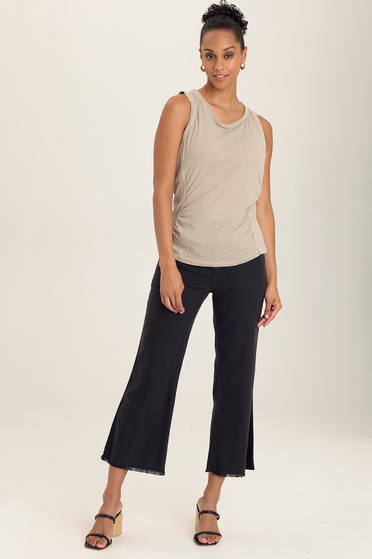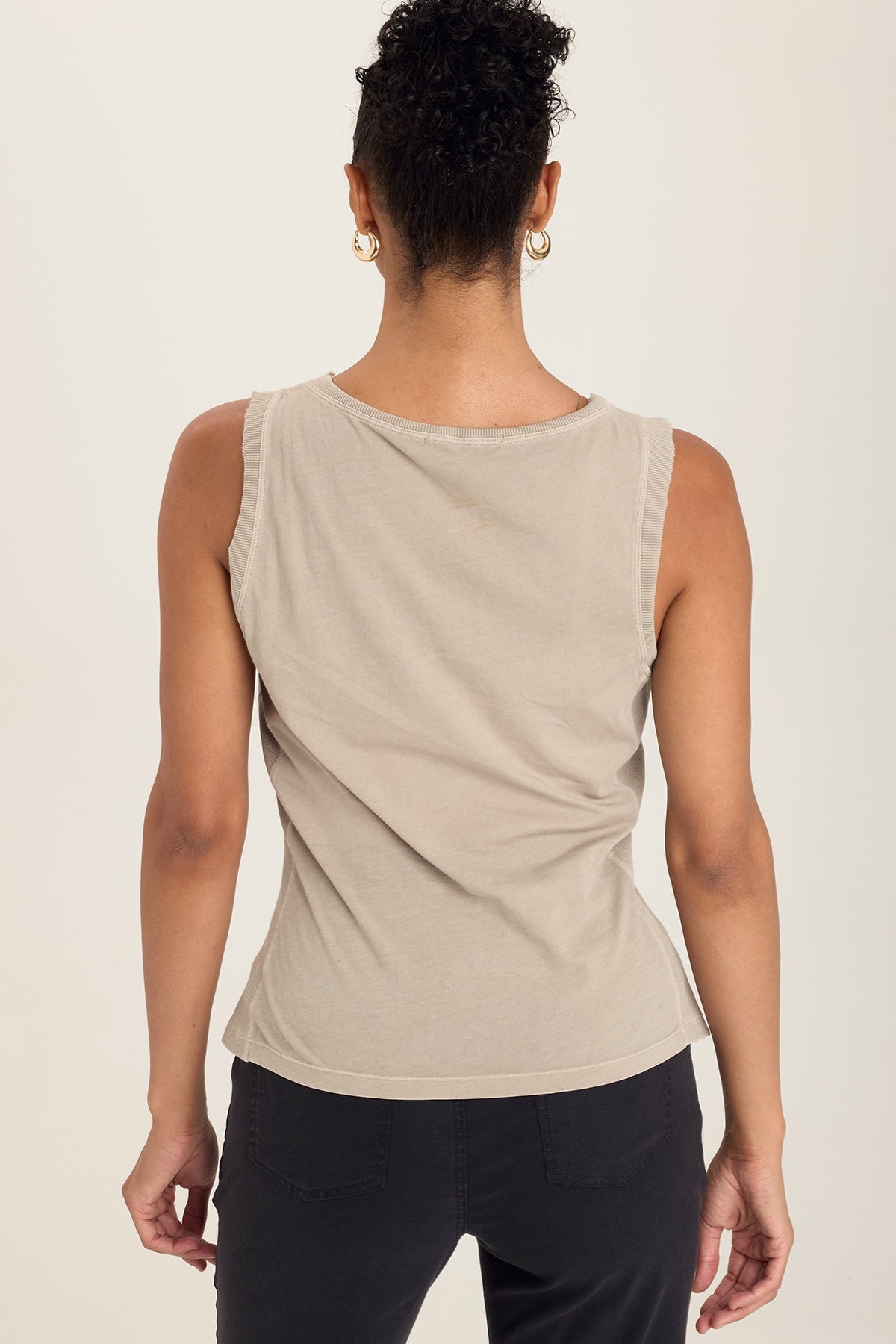 Rib sides panels paired with a shirred body create this fun classic tank.