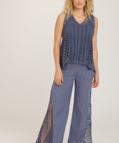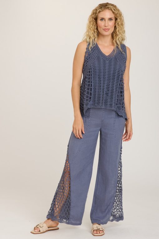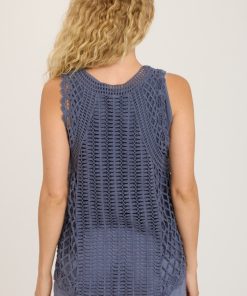 A v-neck cut and asymmetrical hem bring out the best in this layered crochet tank. Delicate and beautiful, Rue absolutely rules!