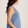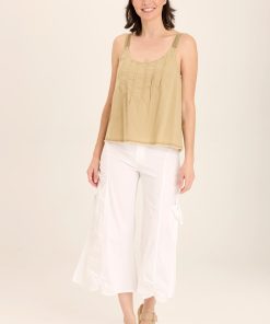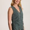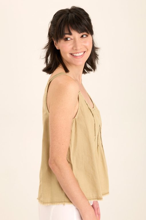 Pintucks along the front with a distressed hemline and small side slits bring detail to this billowy, feminine style.