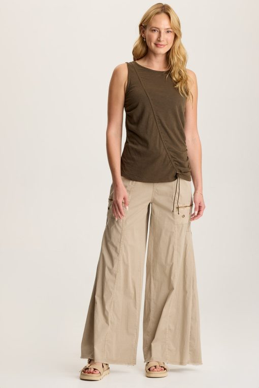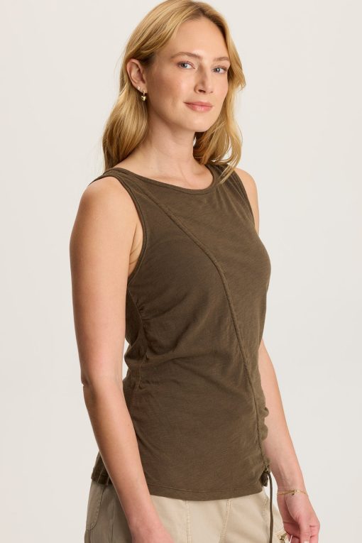 A diagonal ruched corded channel runs along the front of this scoop-neck classic, creating customizable details depending on your desired look. Bra-friendly straps and stretchy jersey mix classic sporty elements with a touch of the avant-garde.