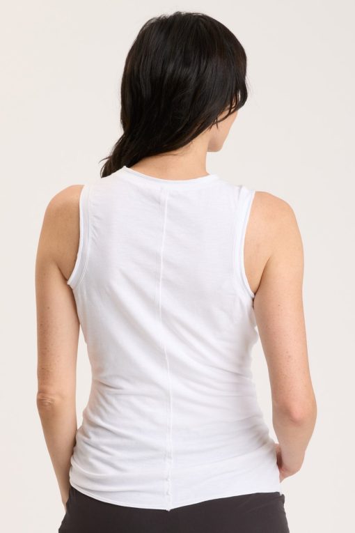 Racer back and a longer body leads Tasha into a layering level of its own! With raw edge details all around, this tank can be worn scrunched and loose at the waist or tucked in for slimmed down silhouettes.