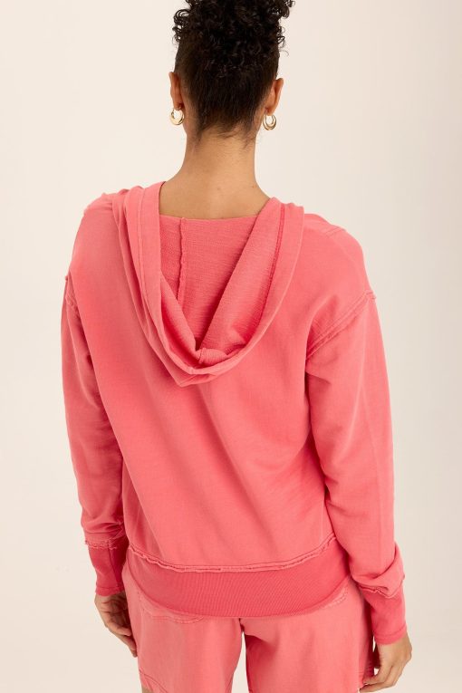Raw edging details and exaggerated rib contrast has Rosalyn turning heads. With a traditional kangaroo pocket and slimming seaming, Rosalyn will be your favorite fashion sweatshirt.
