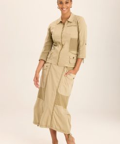 XCVI Women’s Tops Wexel Stretch Poplin Fitted Cargo Jacket | Linwood Sands Pigment